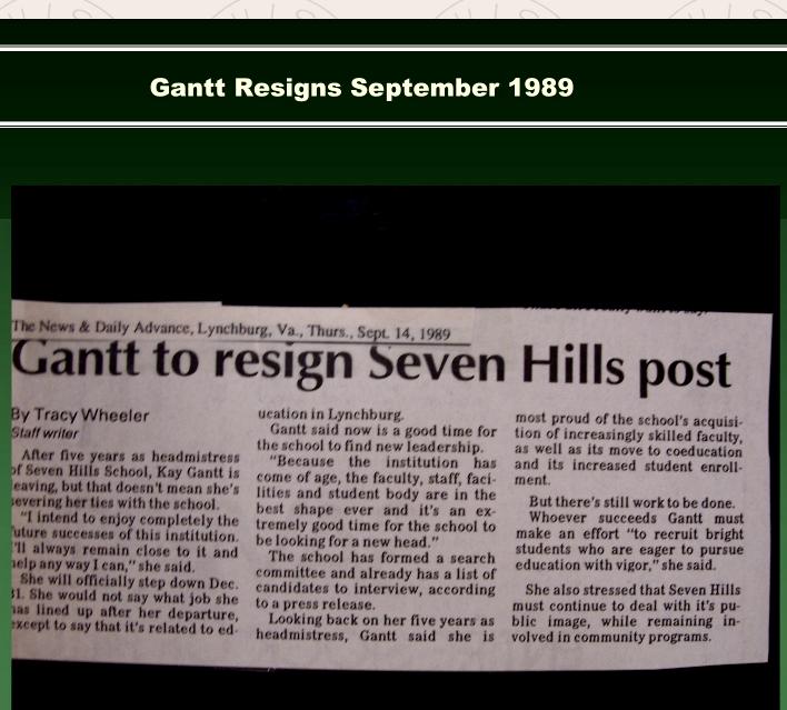 In 1989, Ms. Gantt left Seven Hills School to pursue